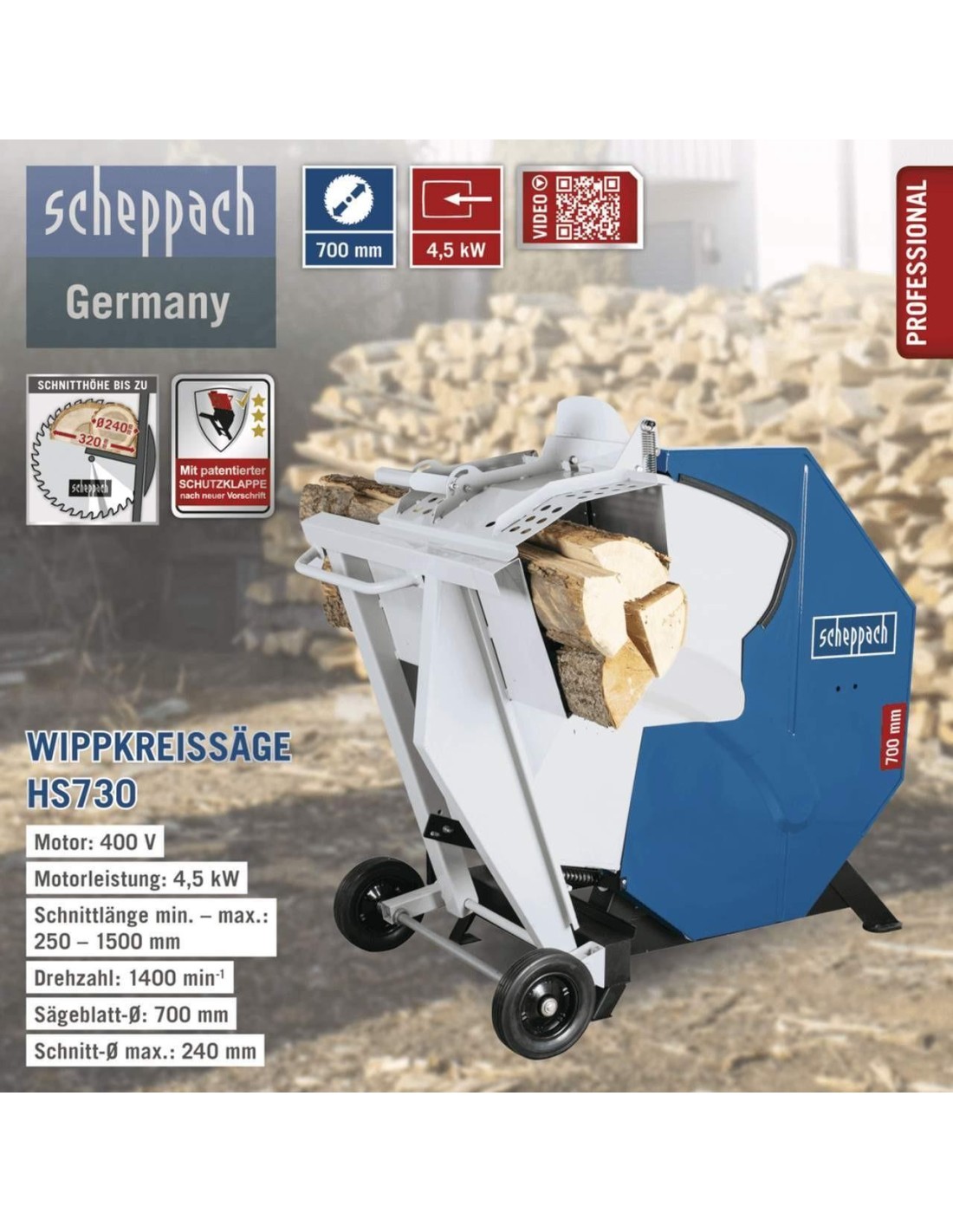 SCIE BÛCHES PIVOTANT TRONÇONNEUSE BASCULANT ÉLECTRIQUE 400V 70CM SCHEPPACH HS730