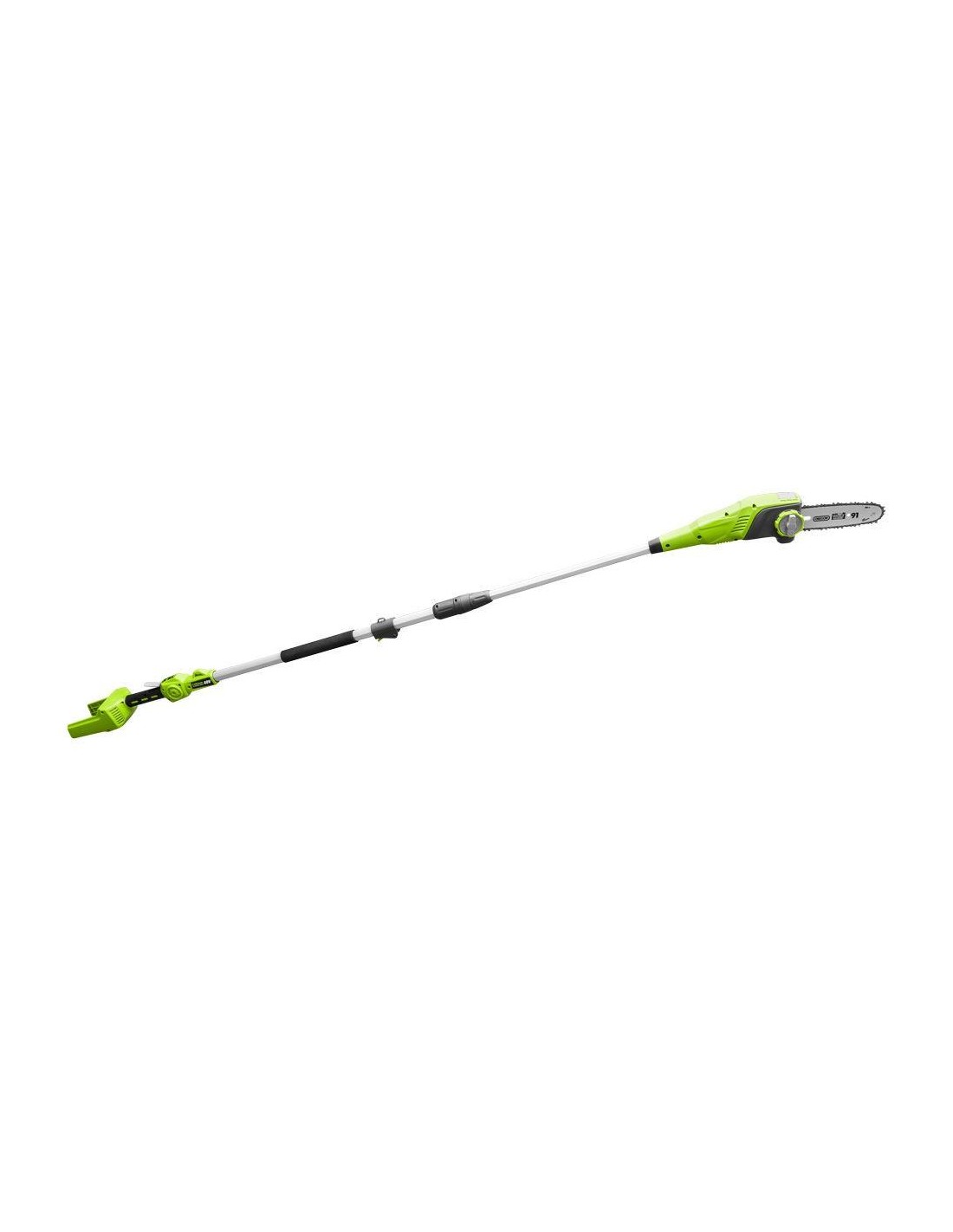 Travail confortable, grâce au positionnement optimale du moteur et la batterie. Tendeur de chaîne sans outil et lubrification de la chaîne mélange auto. Bras télescopique confortable avec poigne Soft-Grip
