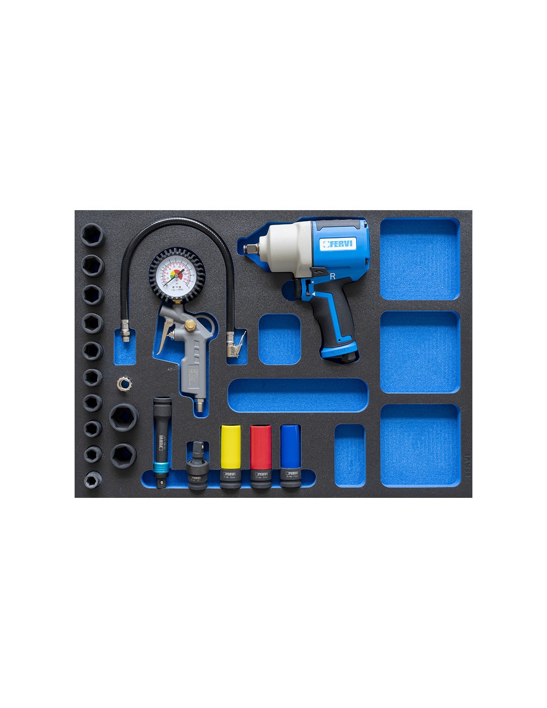 Serie d'outils pneumatiques pour l'automobile en thermoforme Fervi tm01/052