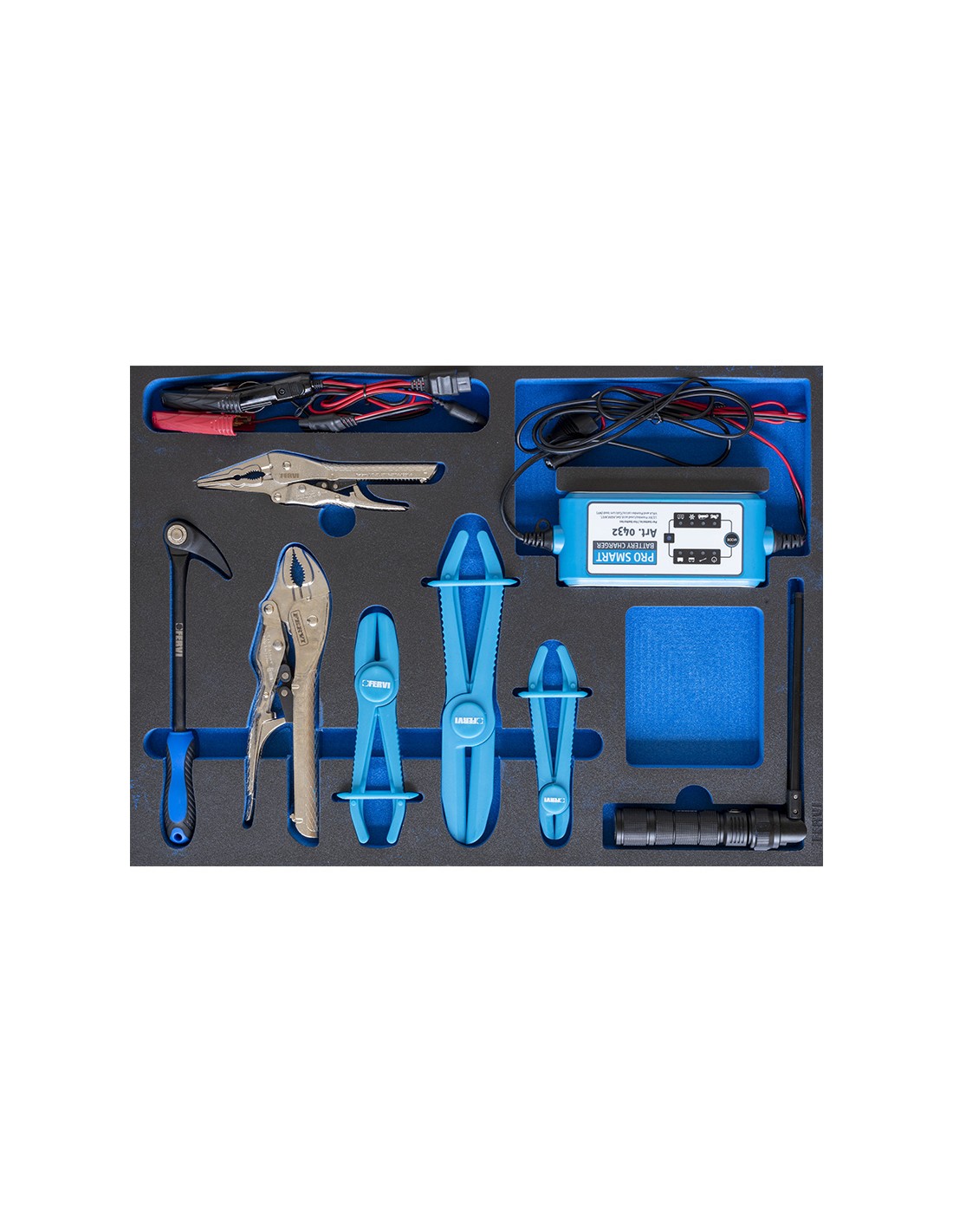 Plateau en mousse de polyéthylène à 4 couches en 2 couleurs : gris-bleu fraisé avec une machine CNC avec un jeu d'outils.