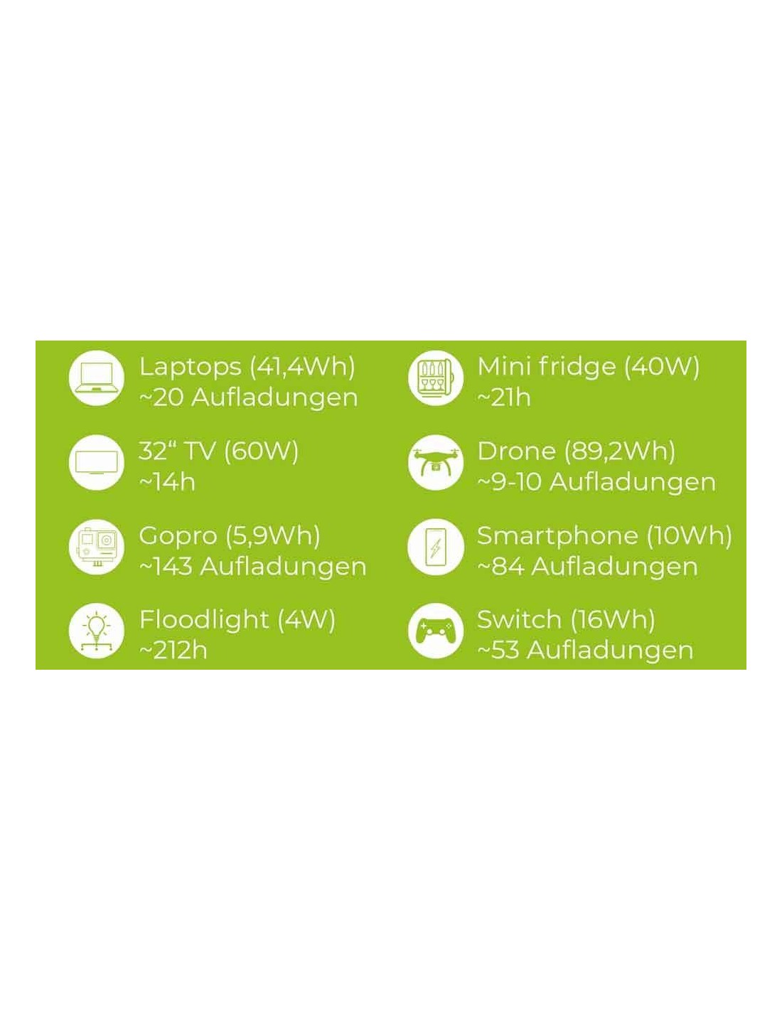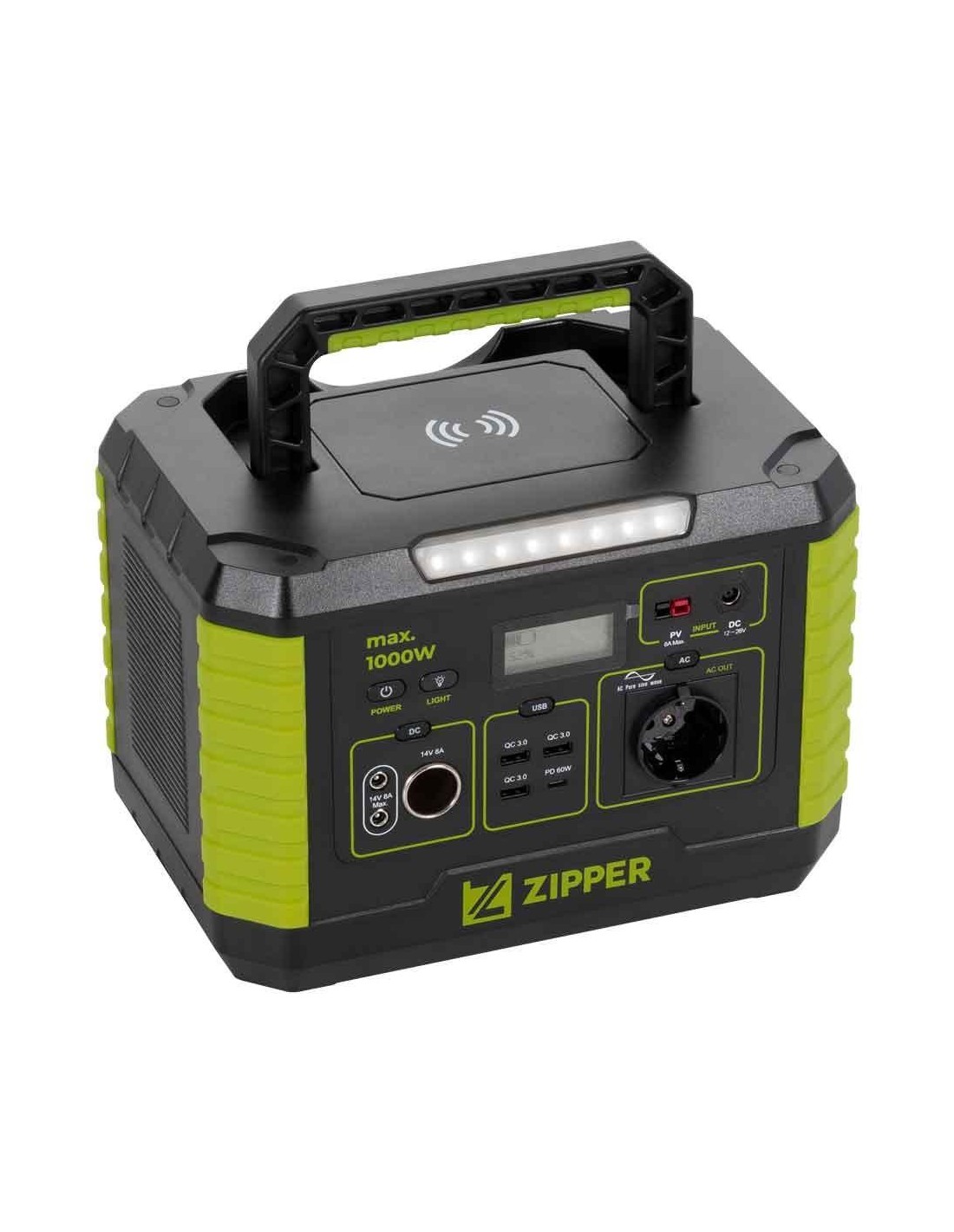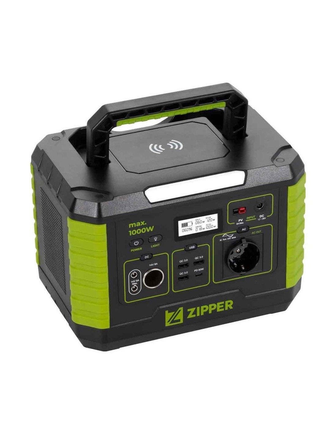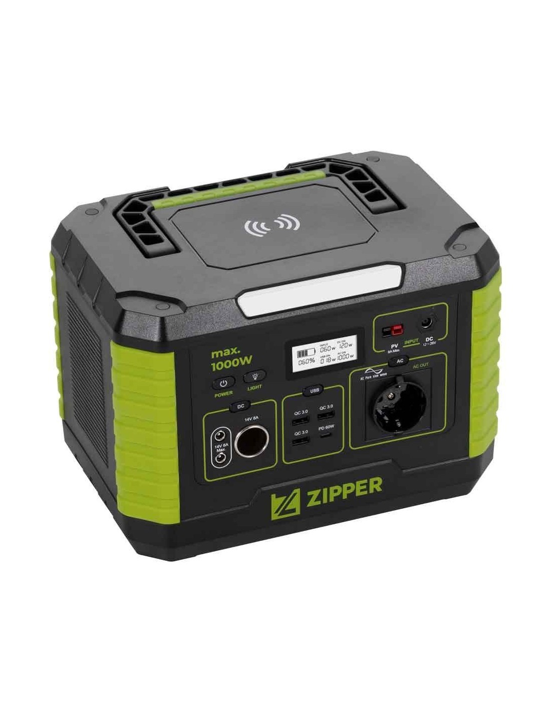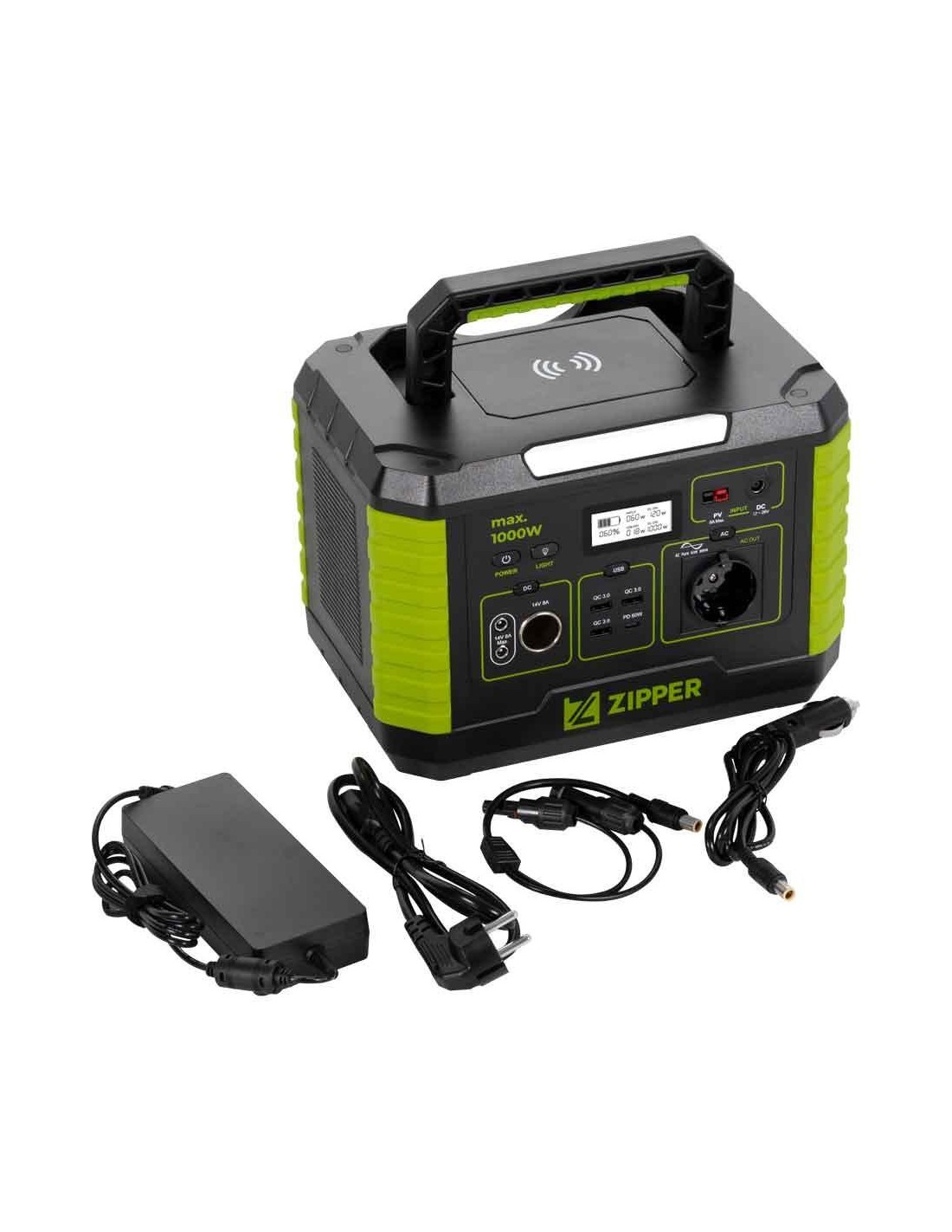 1x AC (230 V / 50 Hz), 3x USB-QC3.0, 1x USB-PD et 2x sorties DC
