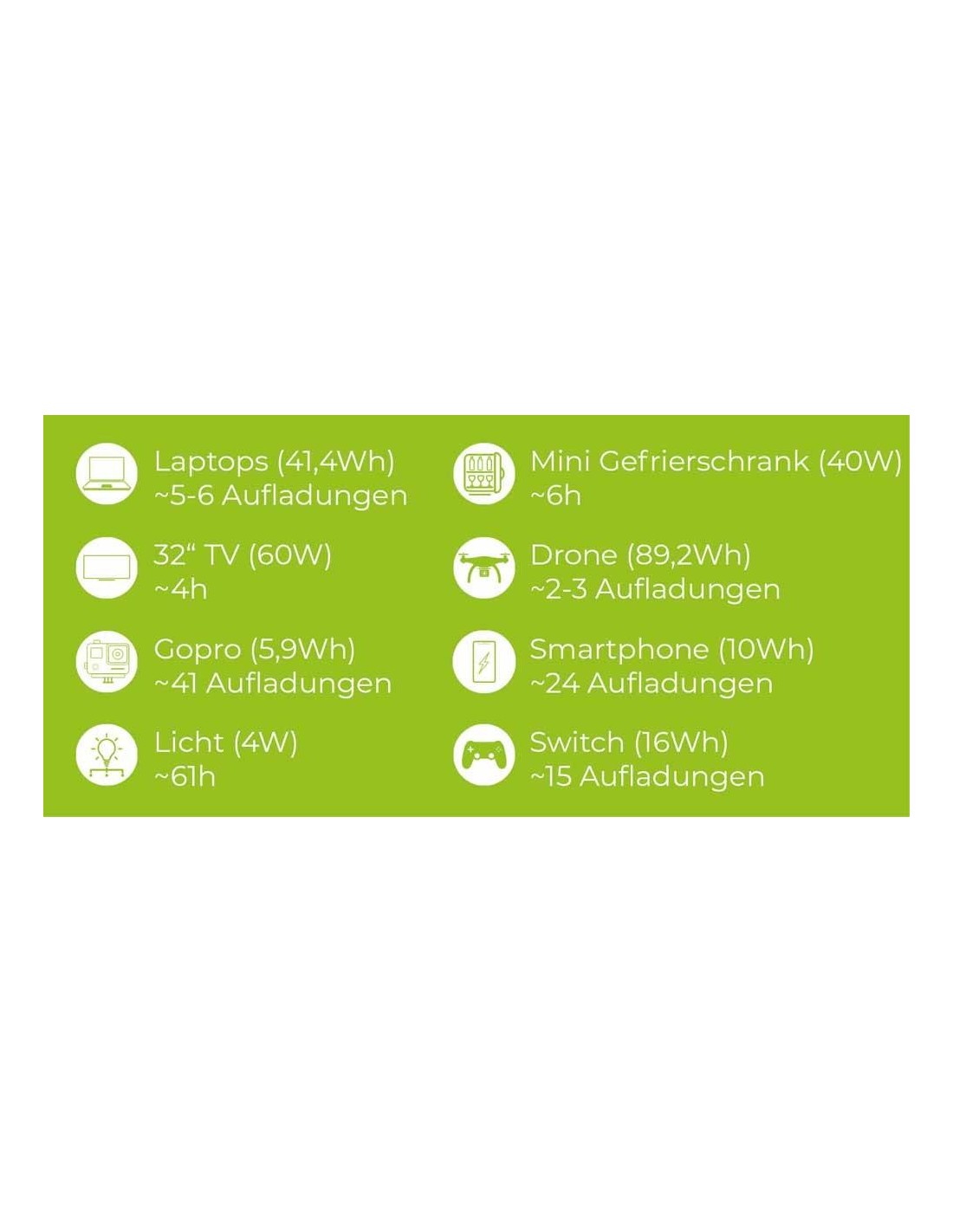 1x AC (230 V / 50 Hz), 3x USB-QC3.0, 1x USB-PD et 2x sorties DC