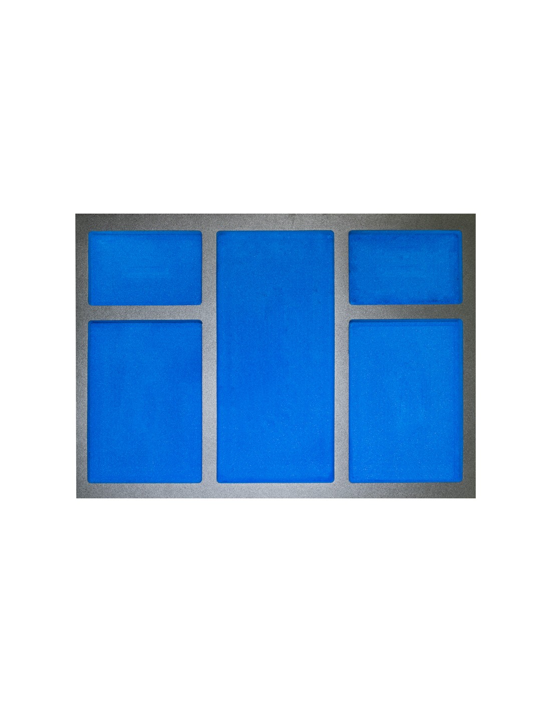 Plateau en mousse de polyéthylène à 4 couches en 2 couleurs : gris-bleu fraisé avec une machine CNC.