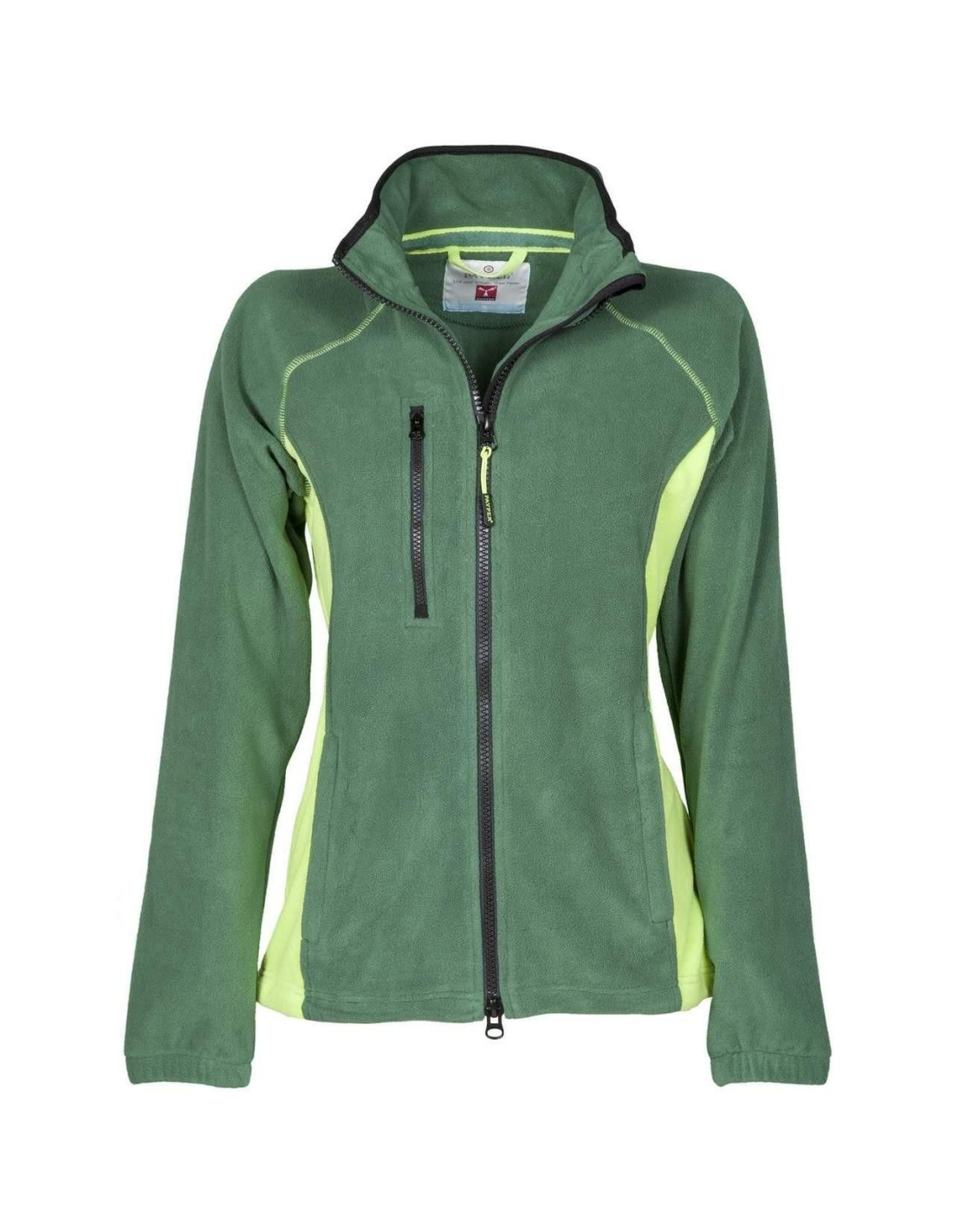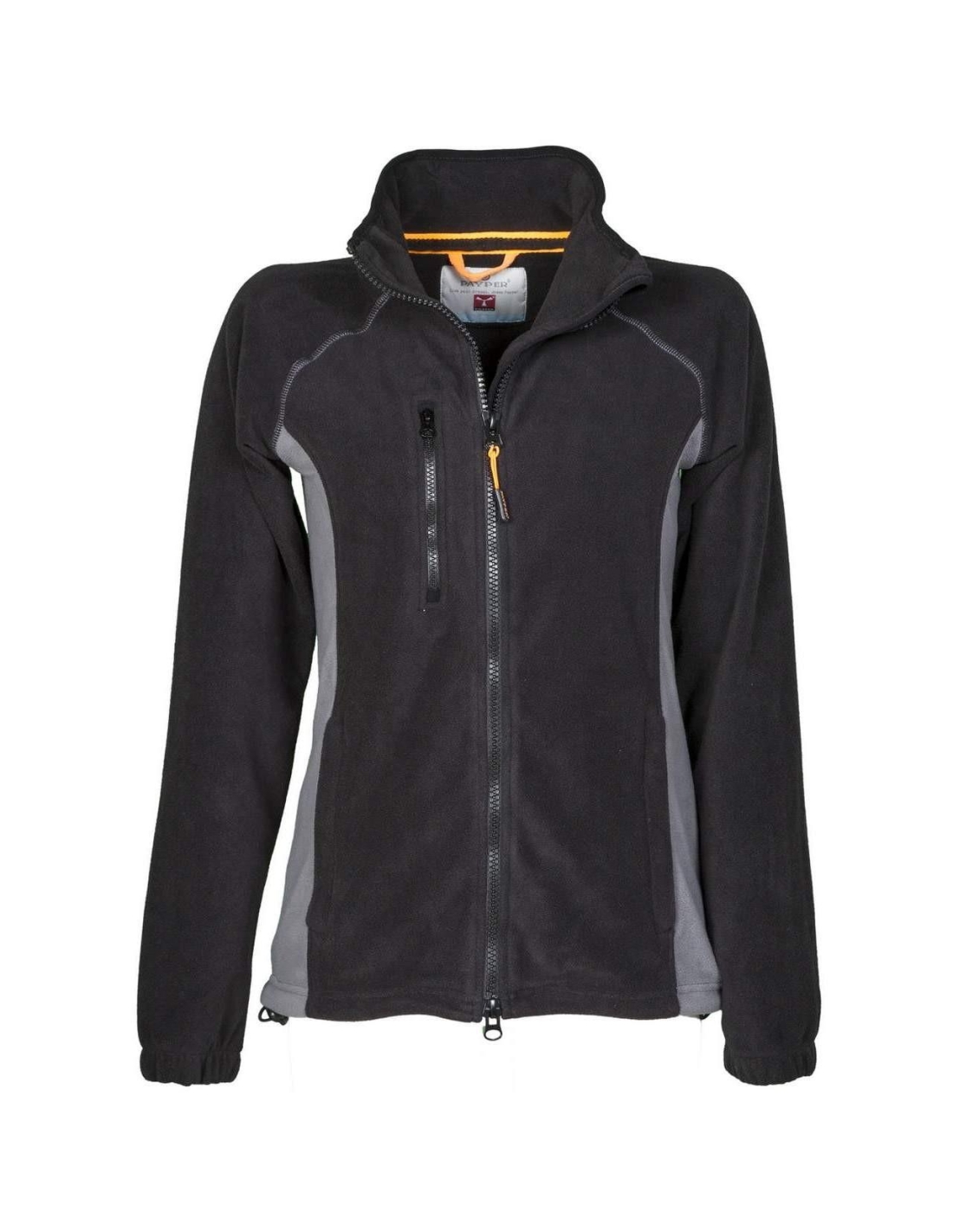 Veste en fibre micropolaire de deux culeurs avec zip entiŽ¿re noir, manche raglan avec coulisse fond bas rŽ®glable, Ž®lastiques serre-poignŽ®e, deux poches avec Zip et fermeture cachŽ®e, une poche avez Zip devant Žá la poitrine. Cou avec bordure en contraste et coutures renforcŽ®es.