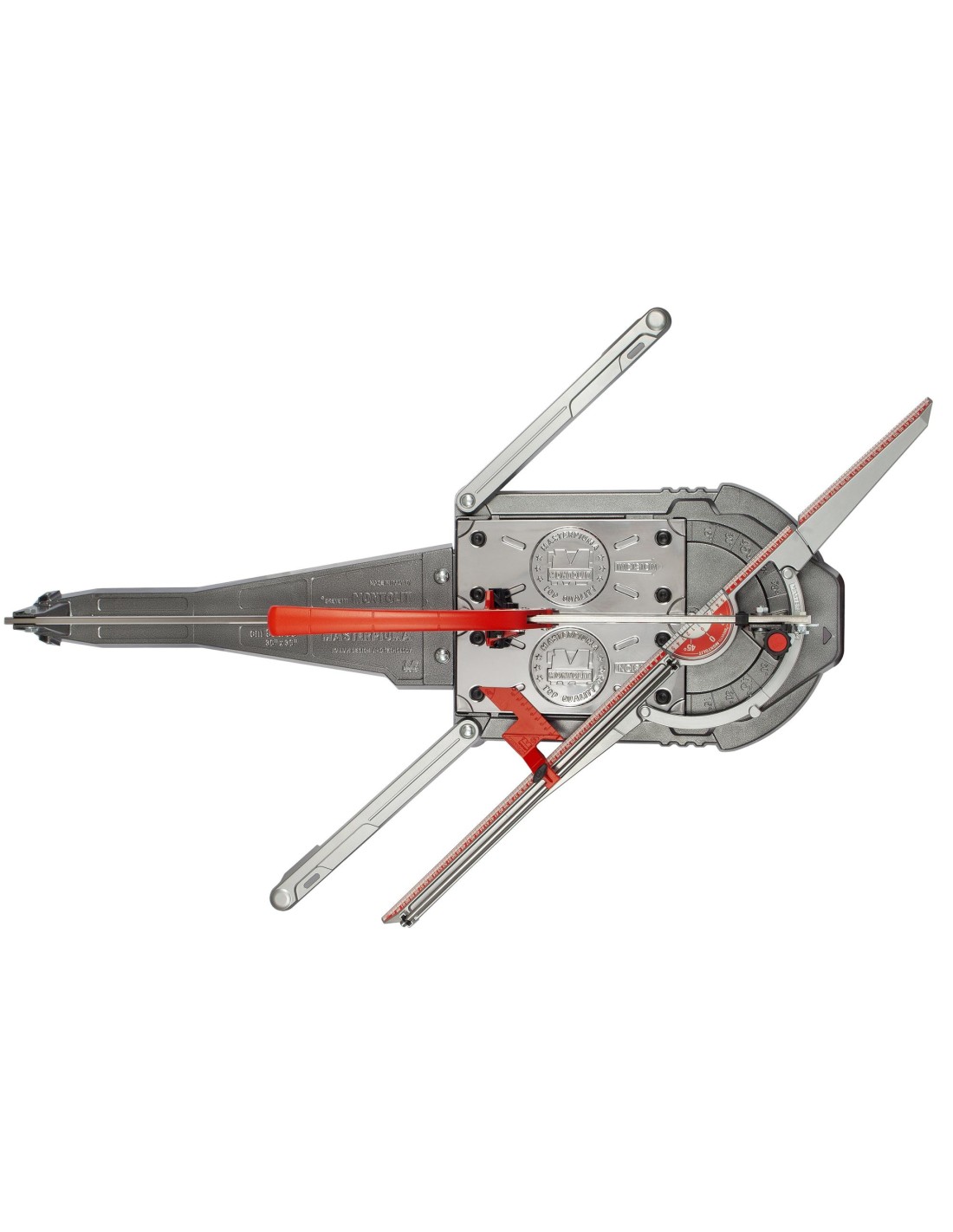- la possibilité pour l'opérateur de gérer la profondeur d'incision et la force de fendage, en pratique la pression exercée peut être contrôlée et modulée de manière optimale grâce à des indicateurs de force spéciaux qui guident l'opérateur en fonction des besoins dictés par les différents matériaux permettant d'affronter sans crainte structuré ou épais carreaux (jusqu'à 20 mm) ou mosaïque de verre très mince, dans la pratique les avantages pratiques déjà évidents liés à la gravure par poussée sont maintenant, grâce au travail spécifique effectué dans la phase de conception et de modélisation de la poignée, encore plus sensibles.