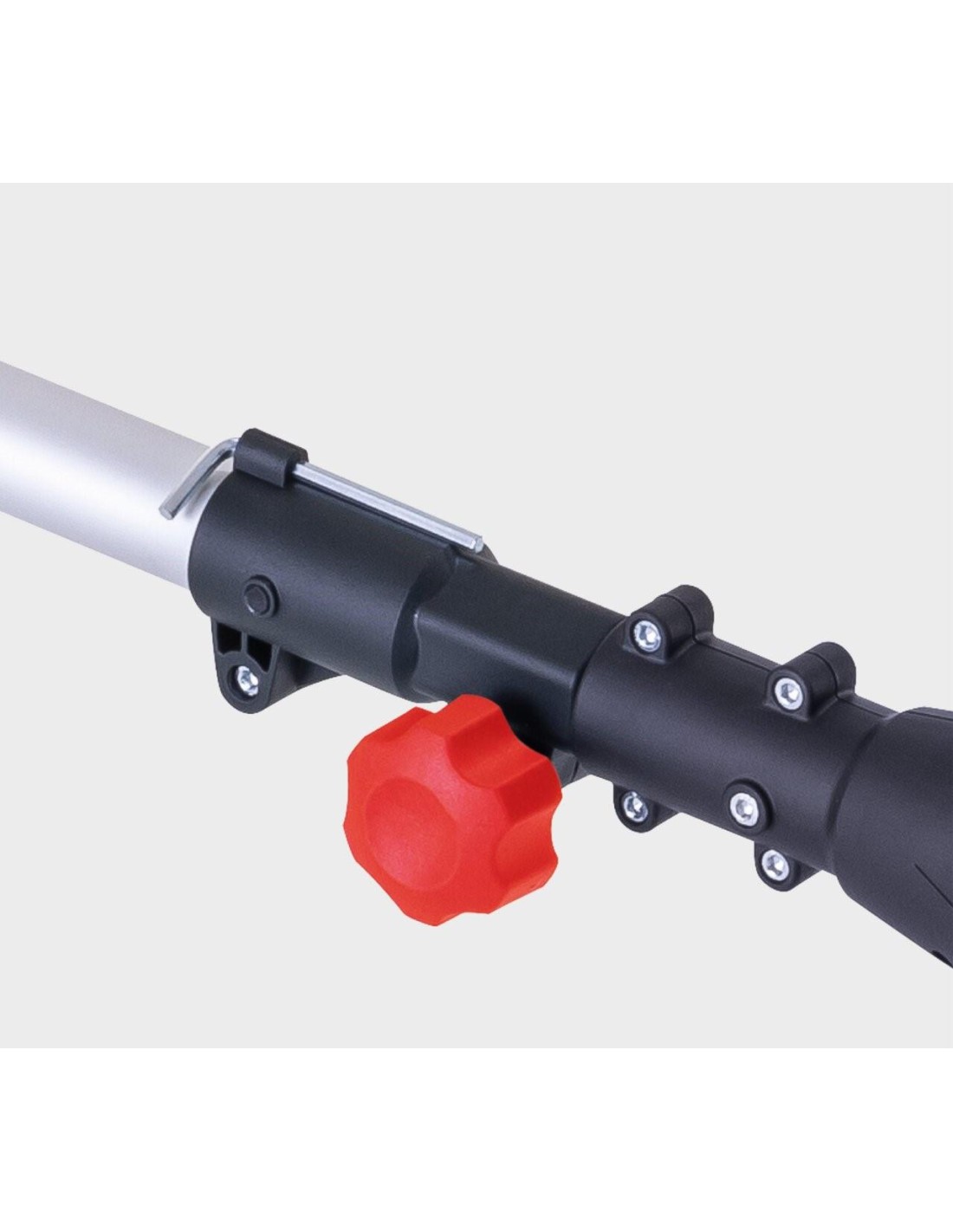 La tête de coupe est orientable à 90° et réglable sur 6 niveaux. L'arbre télescopique peut être étendu en continu jusqu'à 2750 mm.
