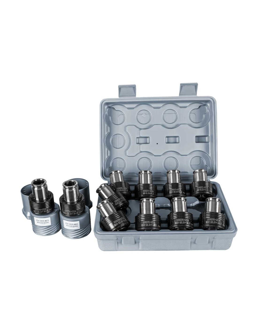 Équipement : Incl. Jeu de pinces (DIN 371 : M6, M8, M10, DIN 376 : M12, M14, M16, M18, M20, M24, M27, M30)