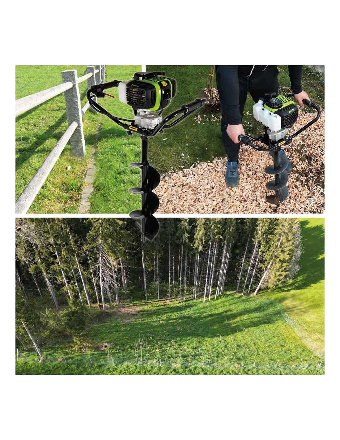 La tarière thermique ZIPPER ZI-ELB380 est l'aide idéale pour votre activité forestière/agricole ou pour votre jardin. Les trous pour les semis d'arbres, les ancrages pour les clôtures, peuvent être percés facilement et sans trop d'effort avec ce produit ZIPPER.
