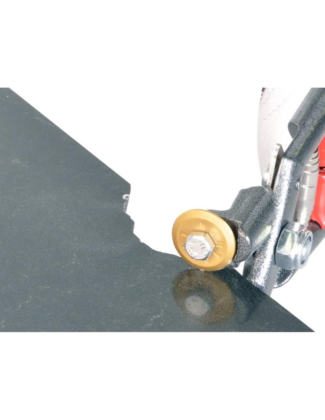 Une des deux roues a la particularité de pouvoir pivoter sur son axe. Ainsi, grâce à un support spécial pour le pouce qui vous permet d’exercer une pression correcte, vous pouvez marquer avant la coupe la surface en céramique, à l’instar du coupe-carreaux Masterpiuma.