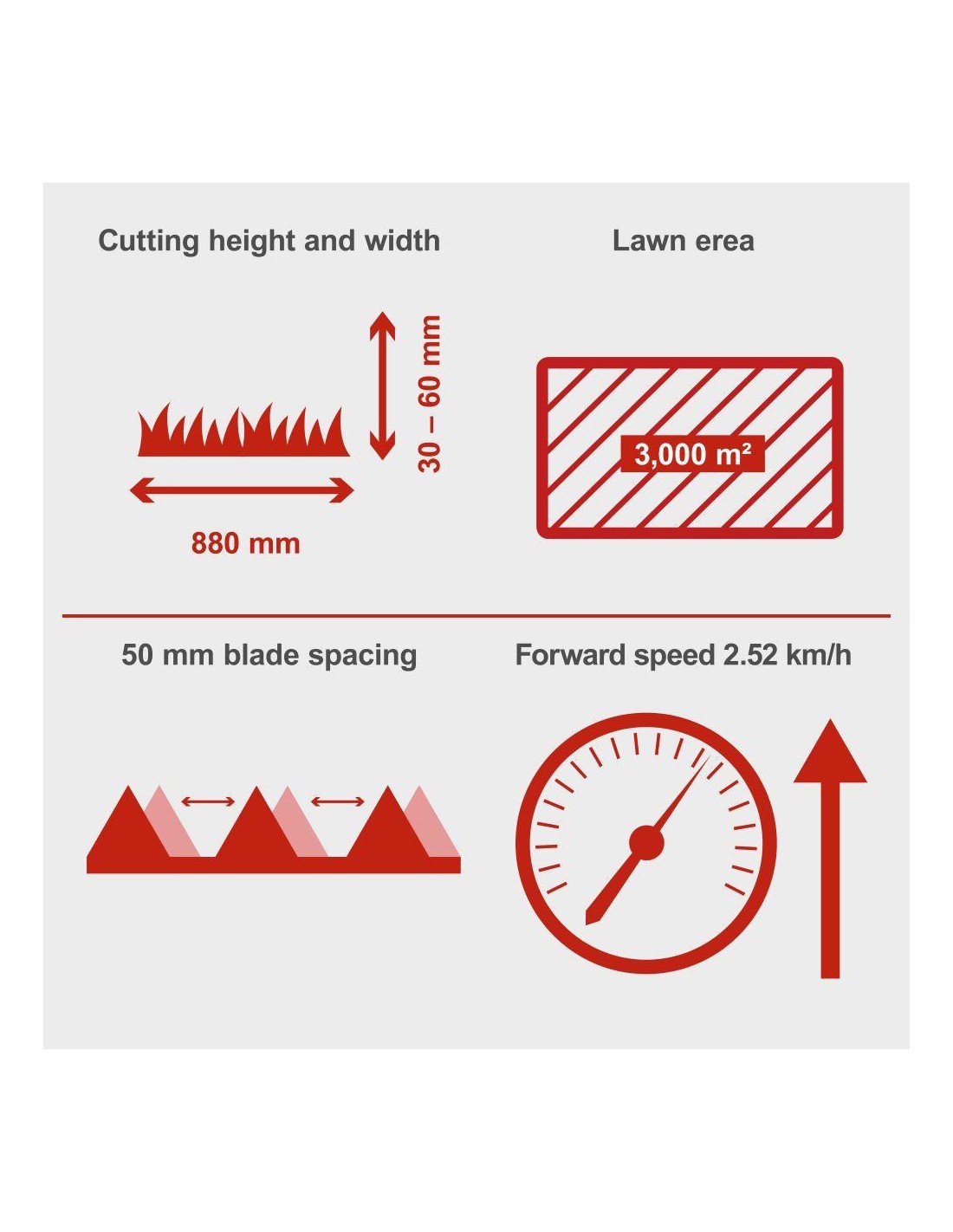 - Marche avant à 2,52 km/h pour une bonne performance de tonte