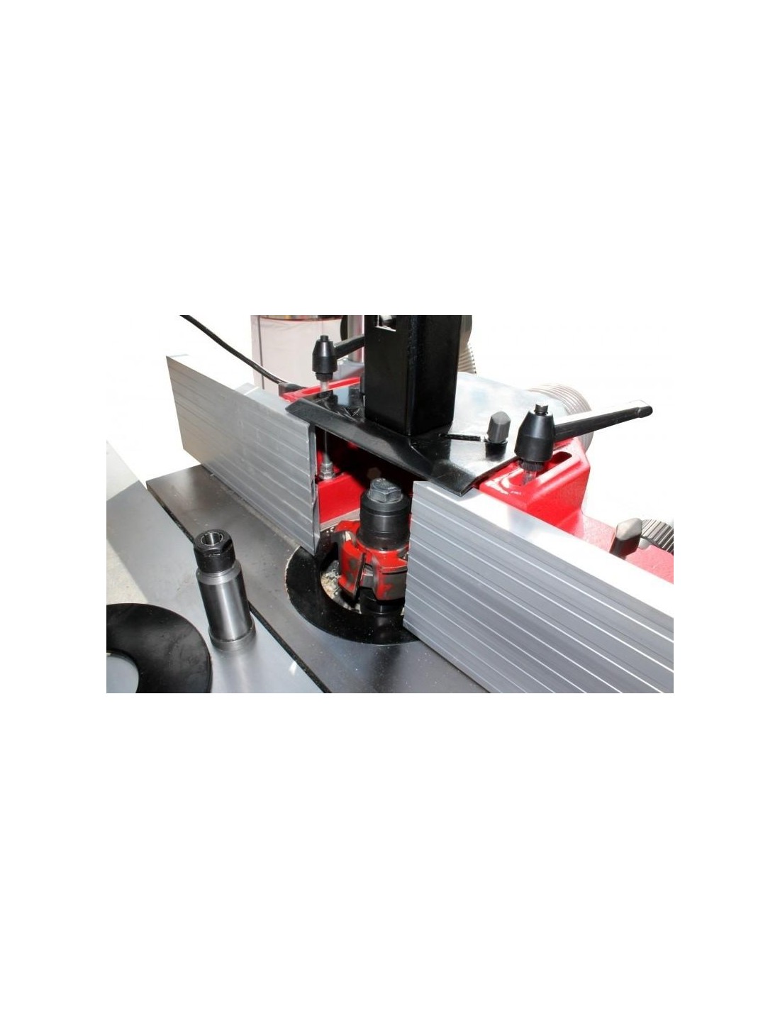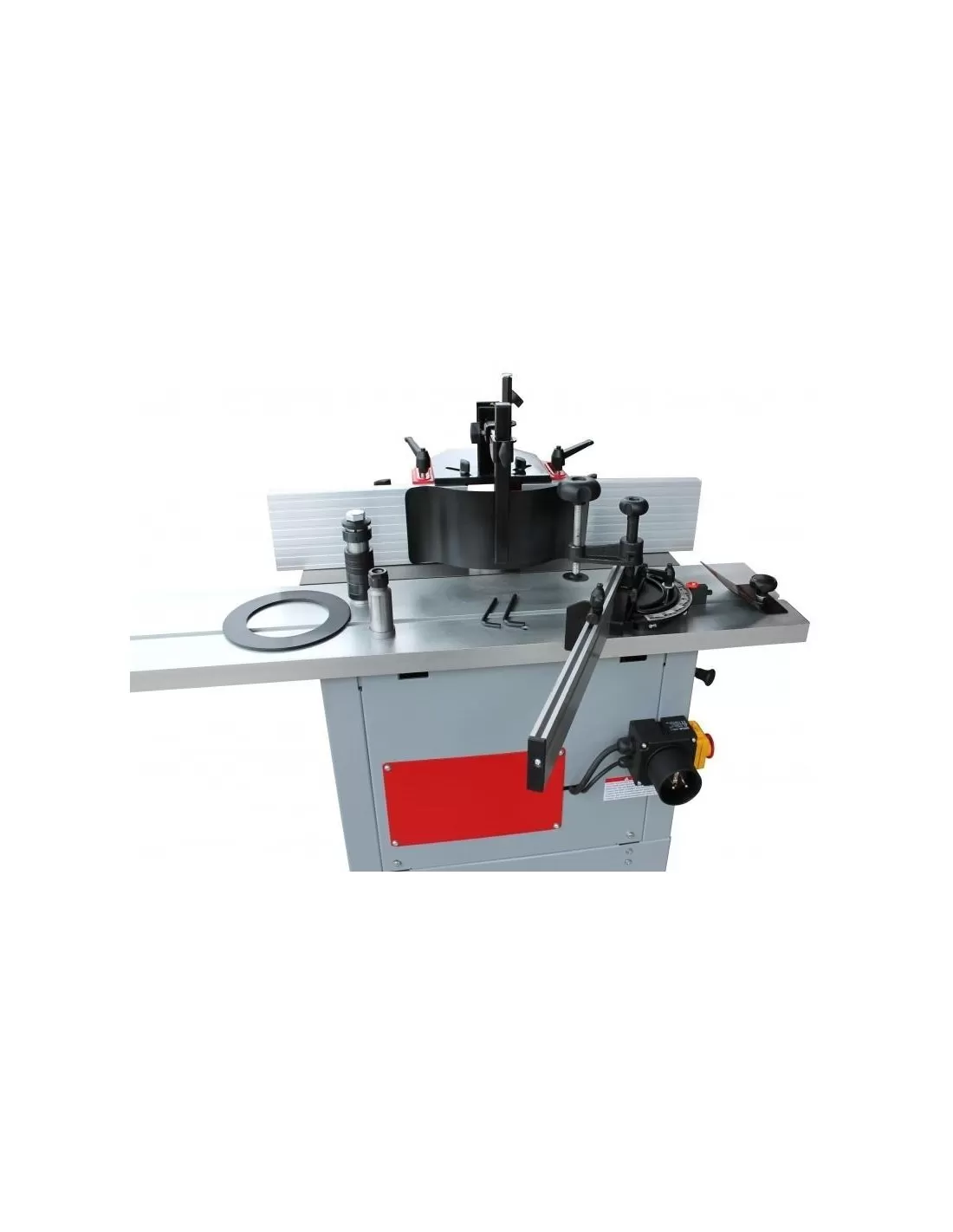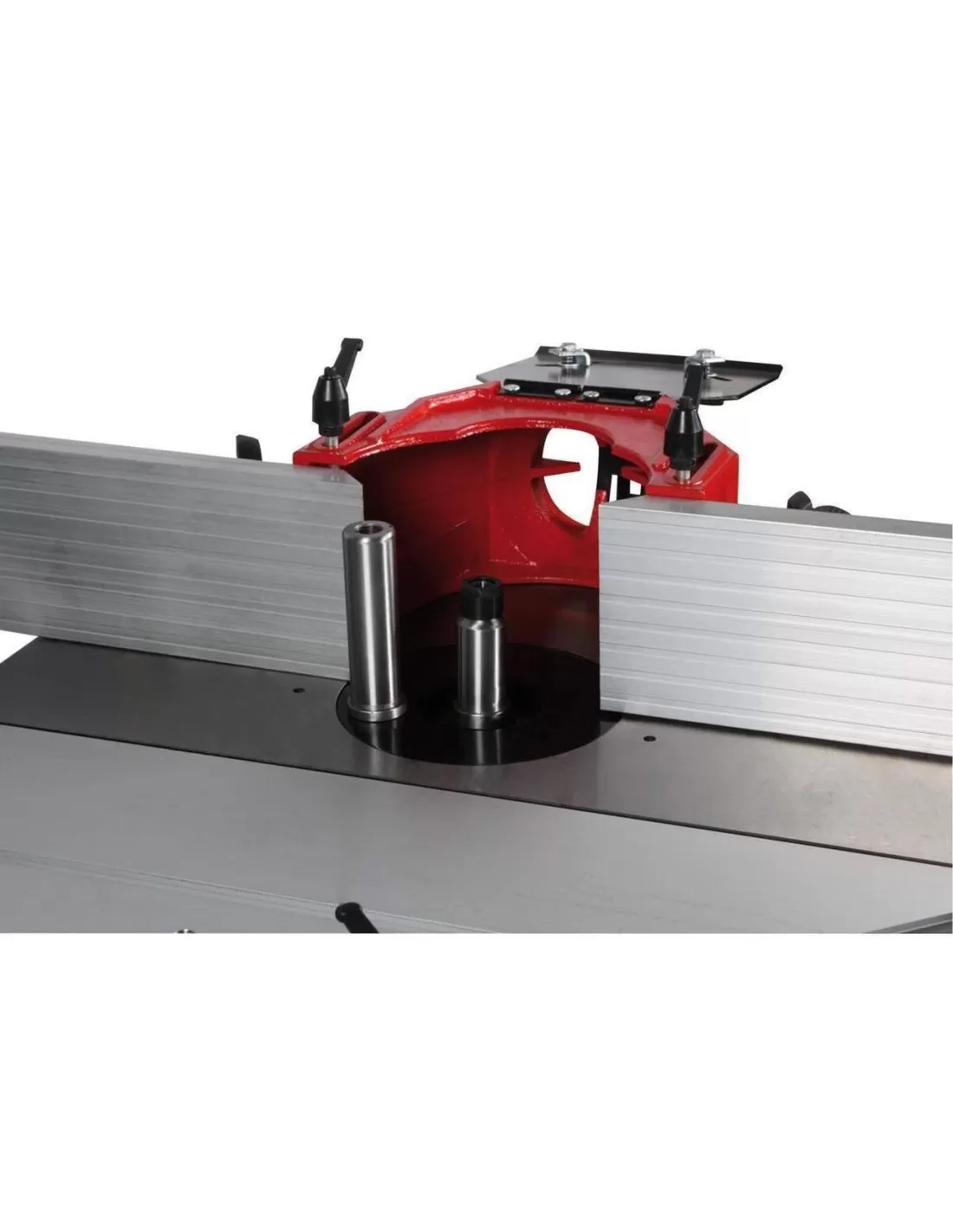 Toupie avec table en fonte rectifiée et chariot coulissant en aluminium extra long.