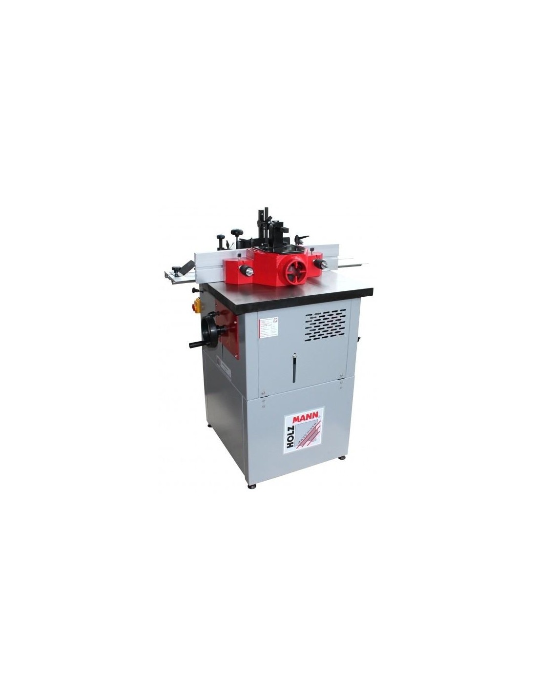 La toupie fixe Holzmann FS160L offre 4 vitesses de rotation, arbre de 30 mm interchangeable pour utilisation de porte outils ou fraises de défonceuses et un chariot aluminium ras de table coulissant.