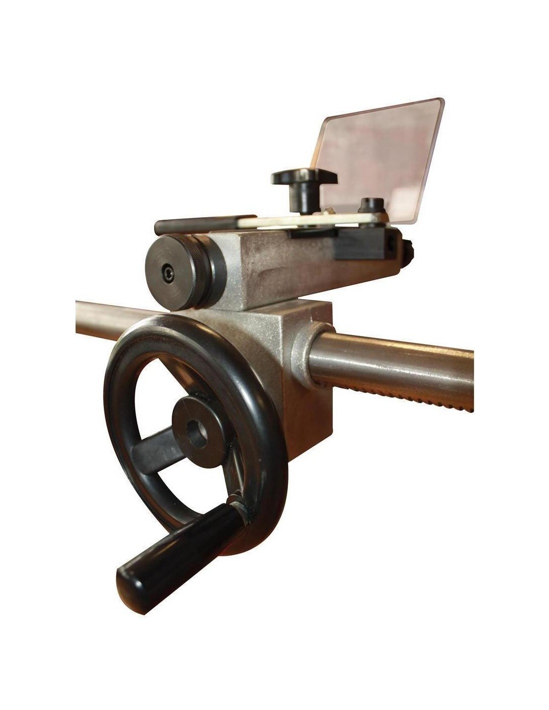 Livrée avec: Piètement en fonte, plateau pour outils, griffe d´entreinement 4 dents, contre pointe tournante, plateau, copieur et support d´outils.