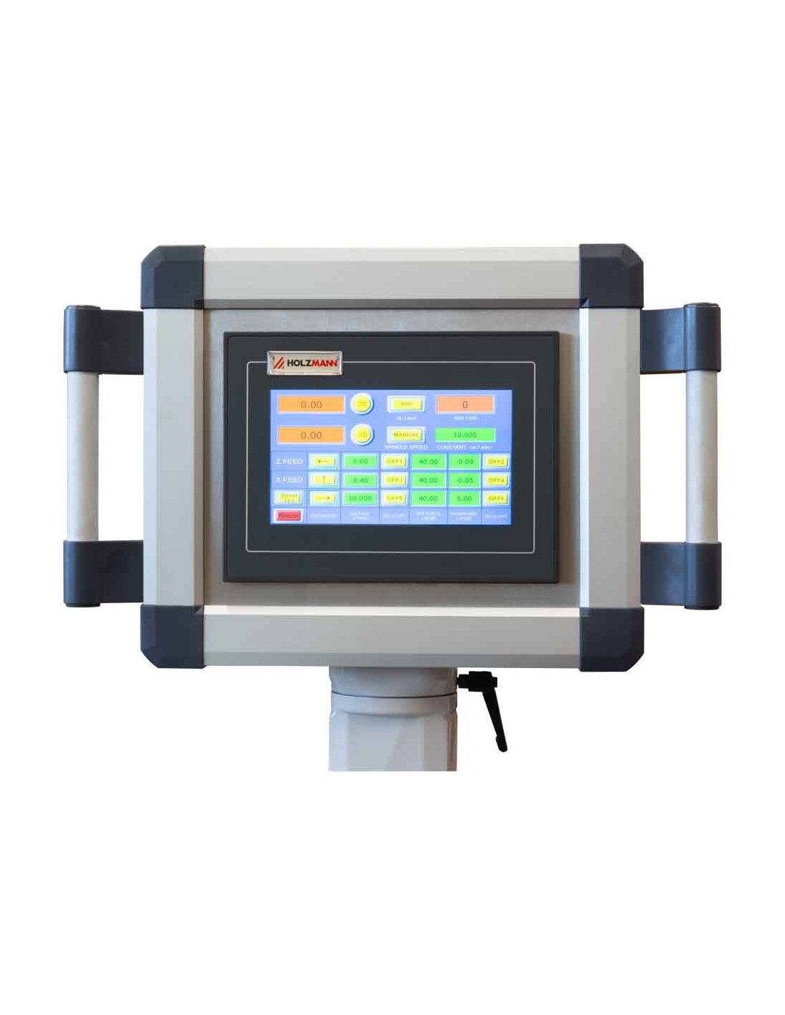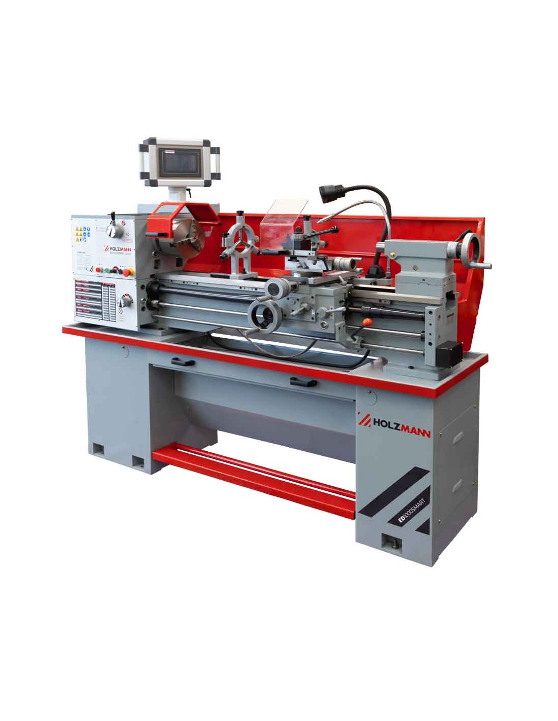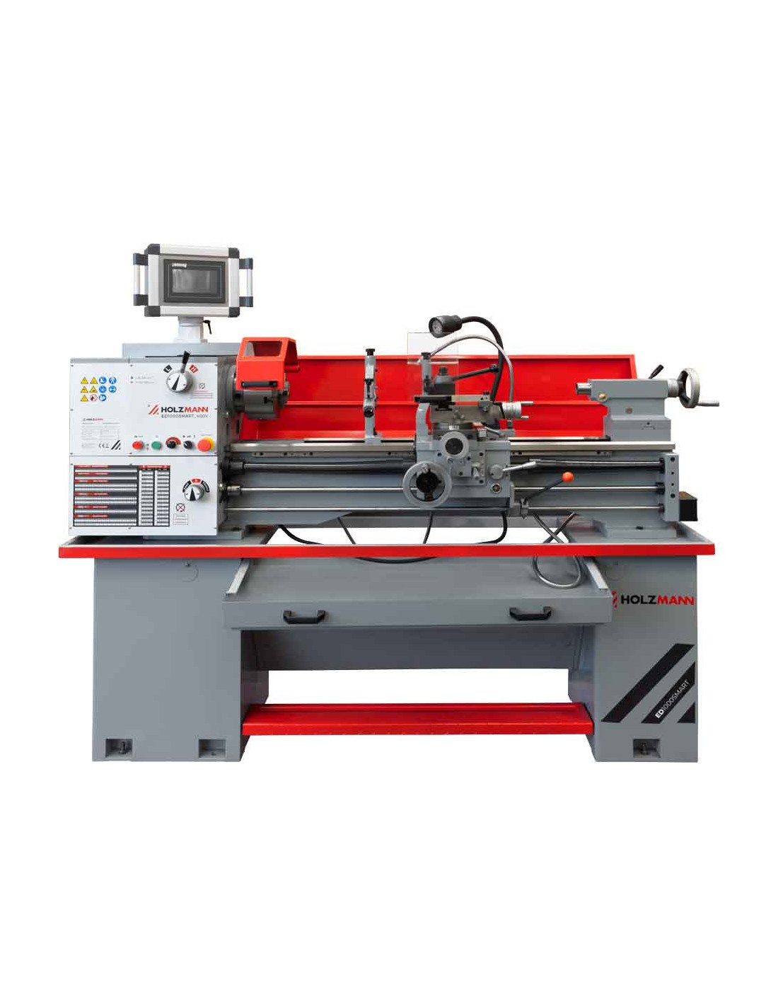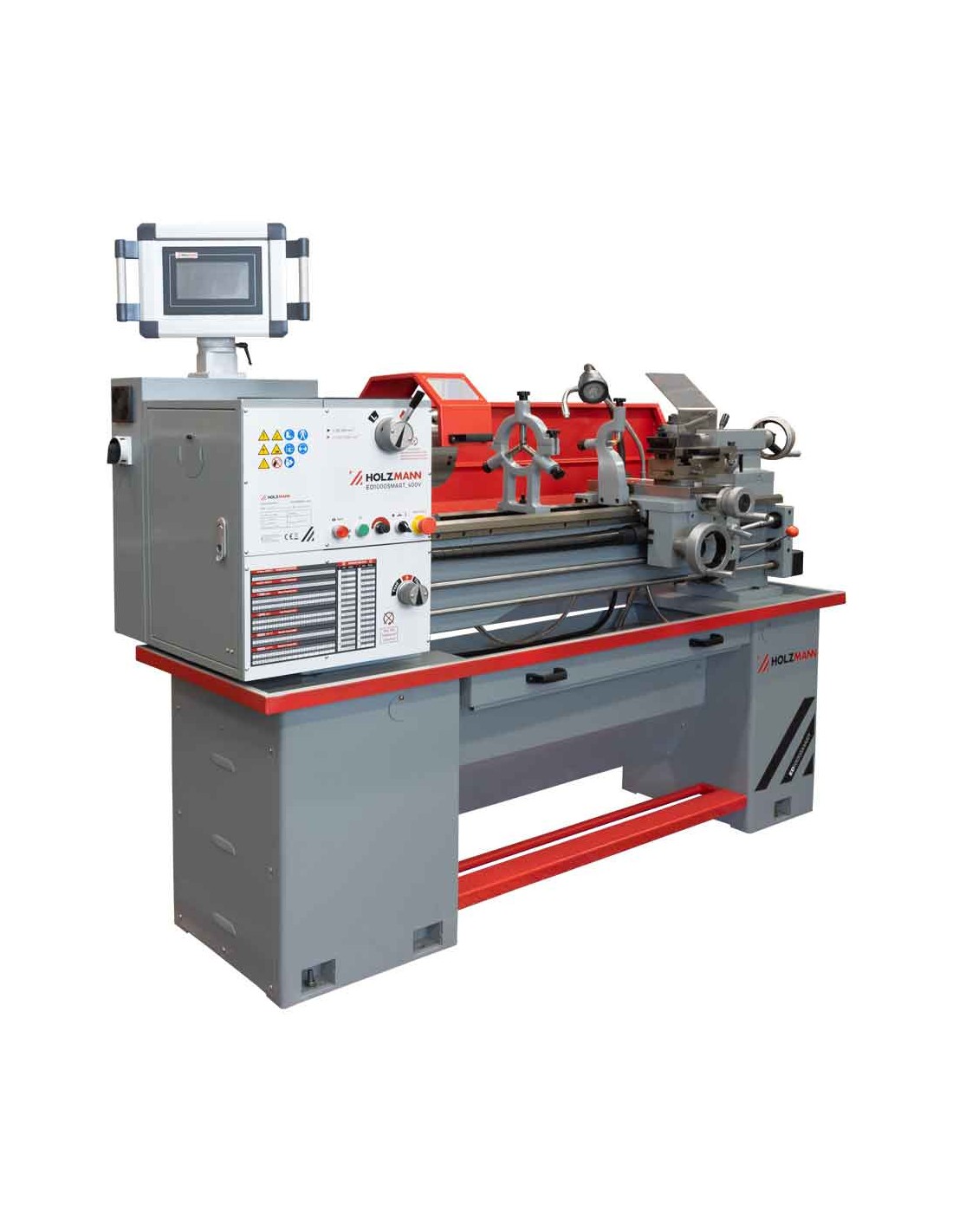 Le tour HOLZMANN ED1000SMART_400V est équipé d'un panneau de commande, d'un réglage automatique de l'avance pour les axes X et Z et d'une alimentation en liquide de refroidissement. Il permet d'usiner des pièces d'un diamètre maximal de 356 mm (ou 500 mm) (via le banc/sans pont).