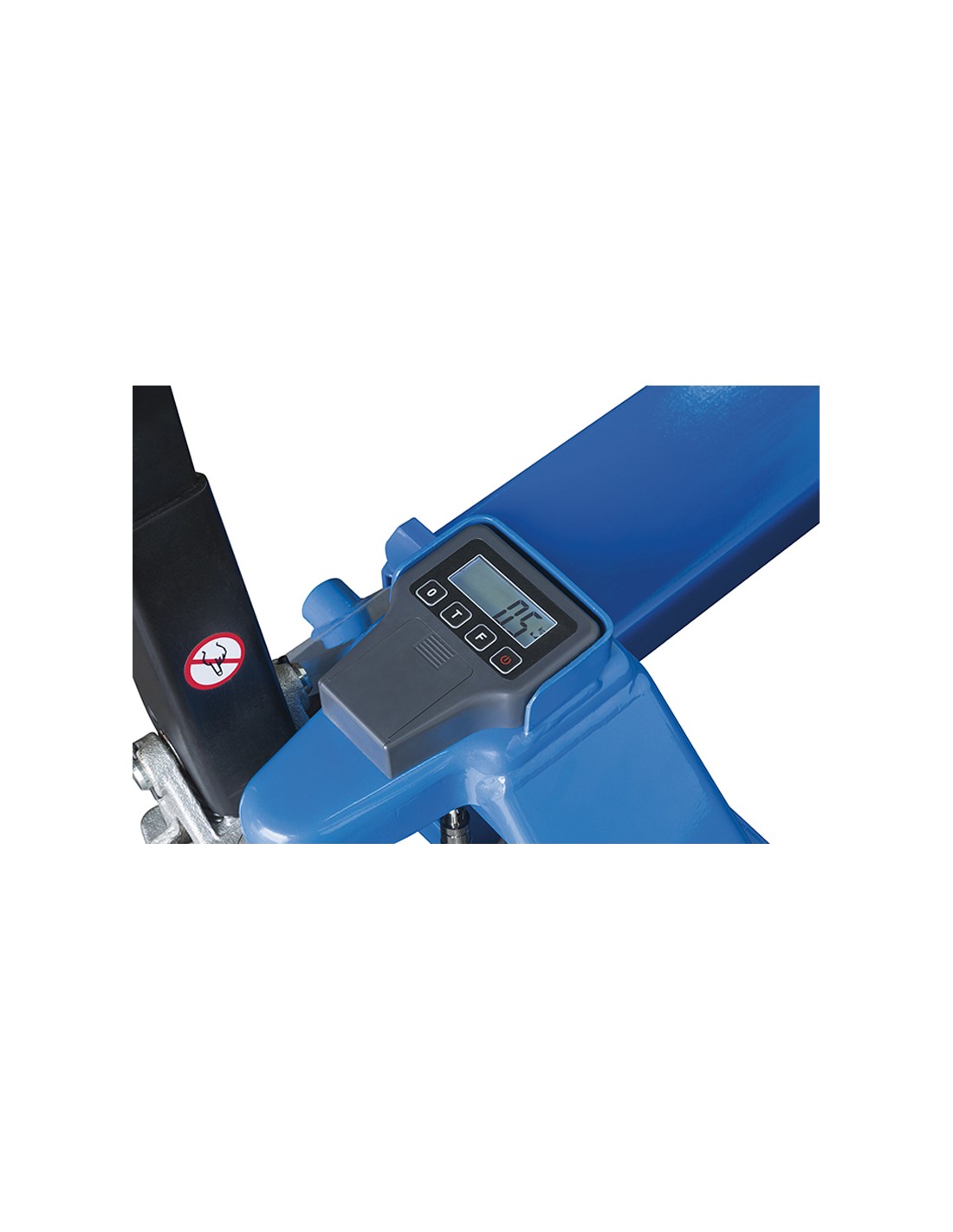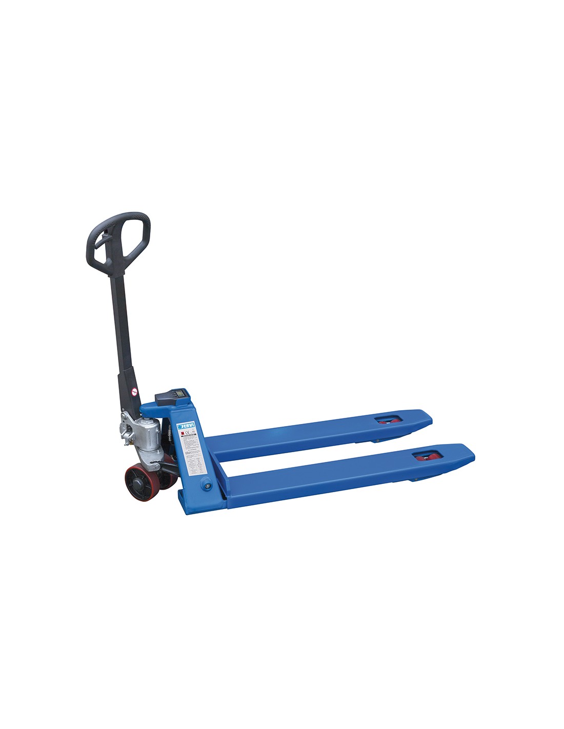 Transpalette avec balance non homologué pour le commerce, fonction tare alimentée par des batteries remplaçables. Avec roues en polyuréthane.