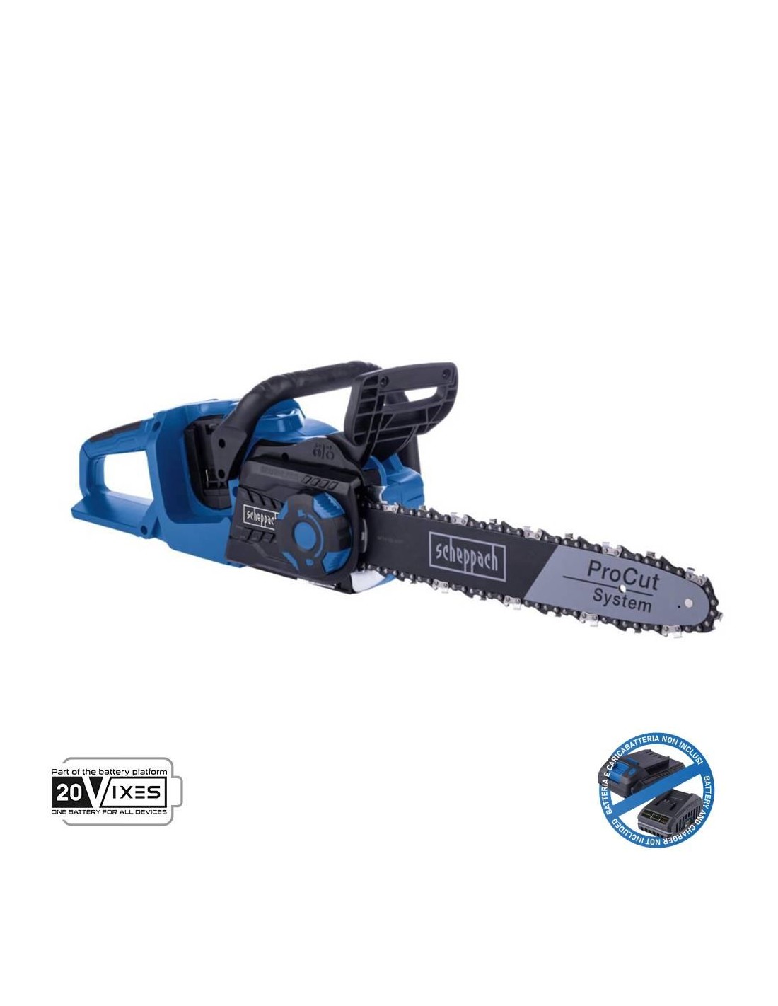 Faisant partie de la série Scheppach IXES 20 volts, toutes les batteries et chargeurs de la série système peuvent être combinés avec la tronçonneuse. La batterie et le chargeur sont disponibles séparément.