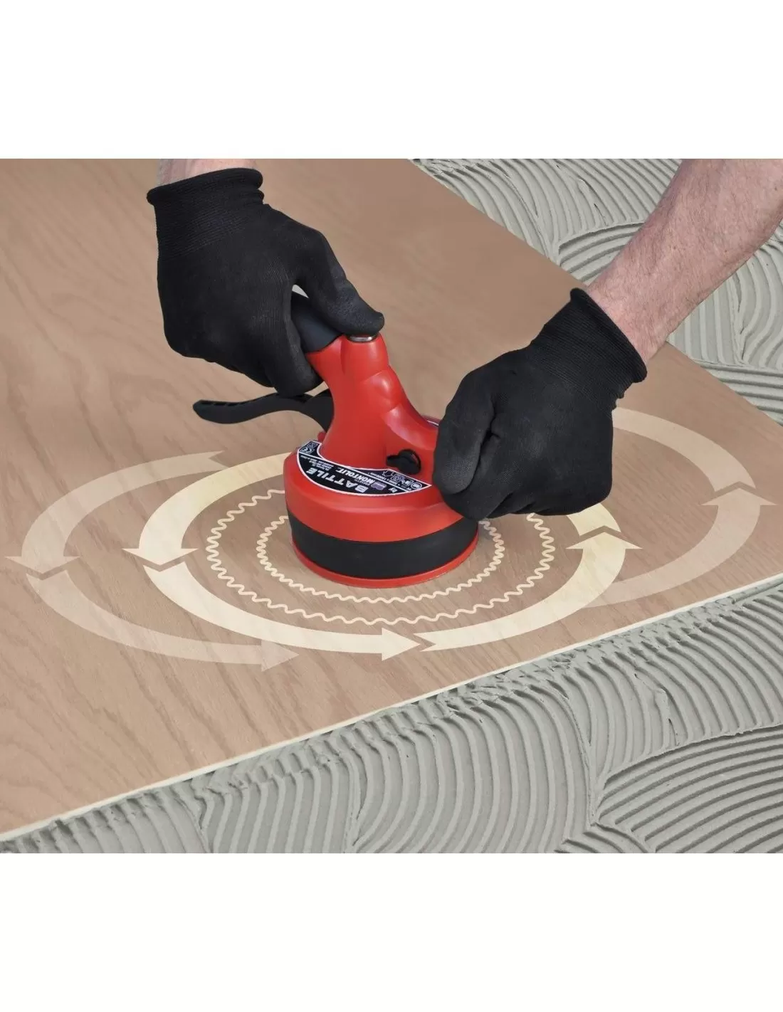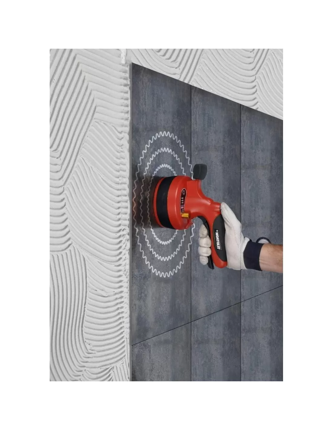 Montolit a développé la ventouse pour carreaux et dalles "BATTILE" afin de faciliter la distribution uniforme de l'adhésif.